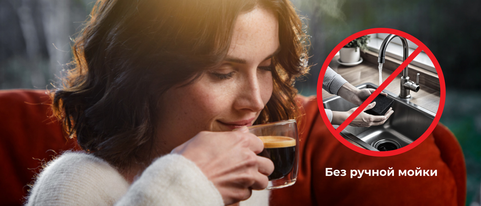 Наша уникальная система автоматически промывает все необходимые элементы после каждой чашки и гарантирует отсутствие остатков кофе и накипи.