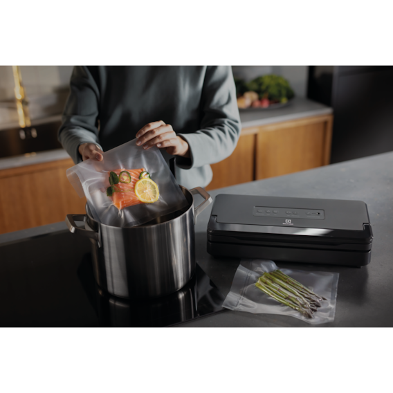 Вакуумний пакет дає змогу повністю зберегти смак і ніжну консистенцію продуктів. Страви, приготовані у вакуумі, втрачають на 40 %* менше вологи та мають кращий смак і текстуру.